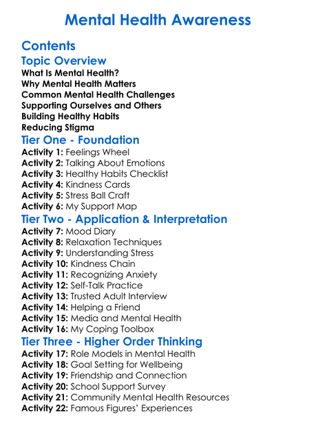 Mental Health Awareness Worksheet Activity Booklet