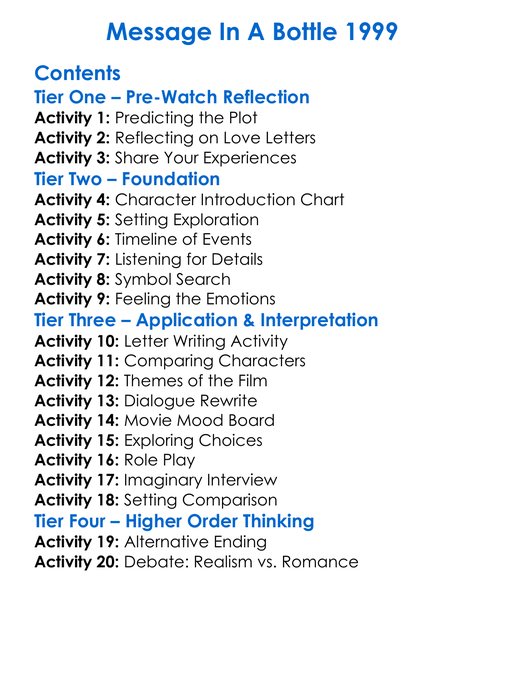Message In A Bottle 1999 Worksheet Activity Booklet