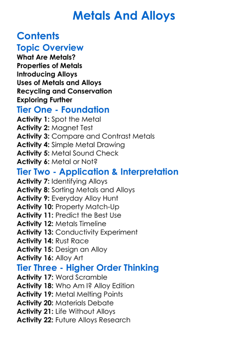 Metals And Alloys Worksheet Activity Booklet