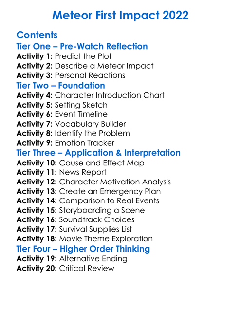 Meteor First Impact 2022 Worksheet Activity Booklet