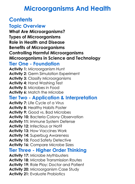 Microorganisms And Health Worksheet Activity Booklet