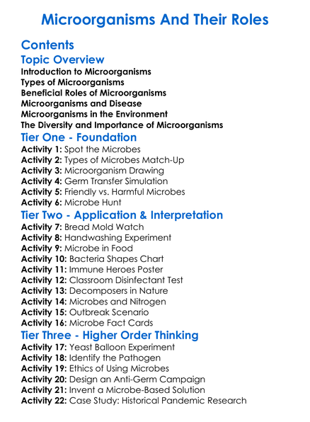 Microorganisms And Their Roles Worksheet Activity Booklet