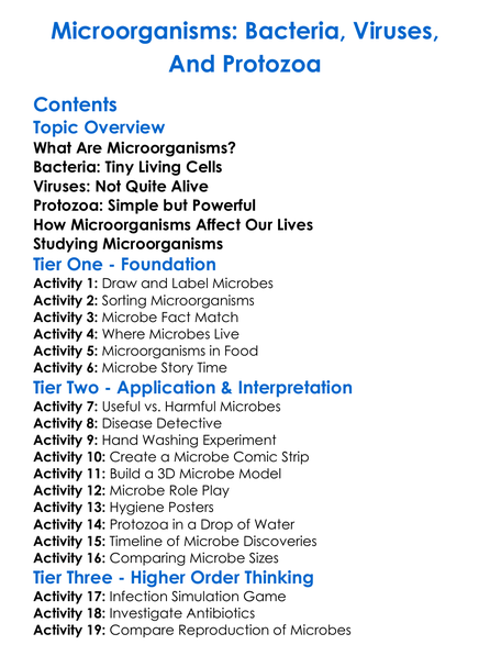 Microorganisms Bacteria Viruses And Protozoa Worksheet Activity Booklet