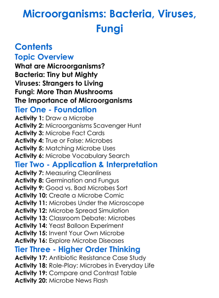 Microorganisms Bacteria Viruses Fungi Worksheet Activity Booklet