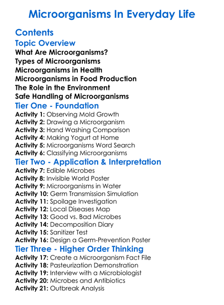 Microorganisms In Everyday Life Worksheet Activity Booklet