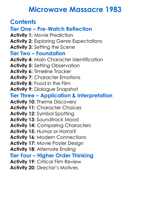 Microwave Massacre 1983 Worksheet Activity Booklet