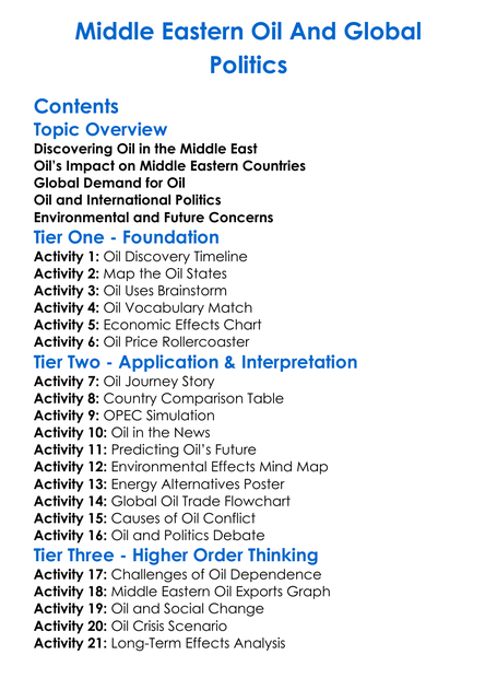 Middle Eastern Oil And Global Politics Worksheet Activity Booklet