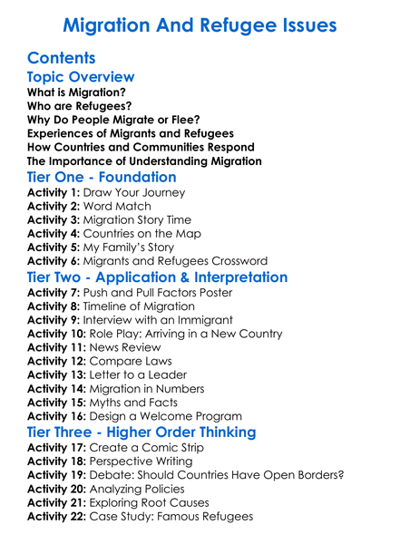 Migration And Refugee Issues Worksheet Activity Booklet