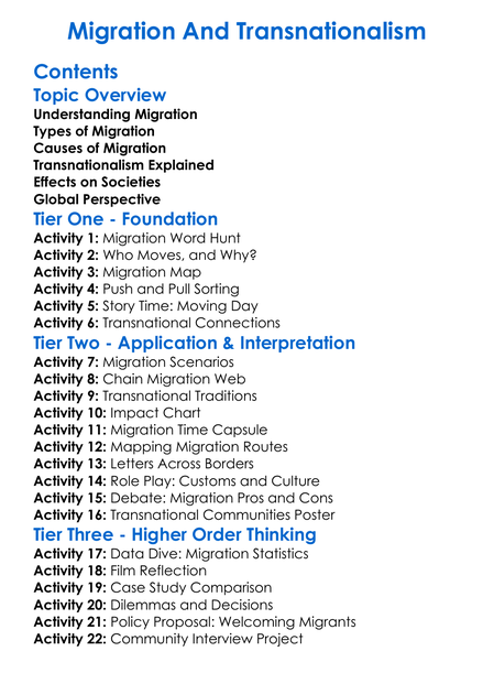 Migration And Transnationalism Worksheet Activity Booklet