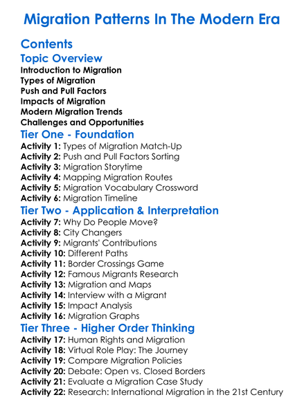 Migration Patterns In The Modern Era Worksheet Activity Booklet