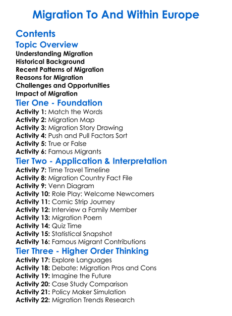 Migration To And Within Europe Worksheet Activity Booklet