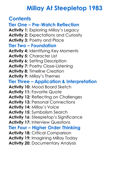 Millay At Steepletop 1983 Worksheet Activity Booklet