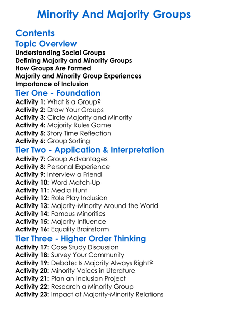 Minority And Majority Groups Worksheet Activity Booklet