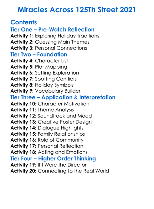 Miracles Across 125Th Street 2021 Worksheet Activity Booklet