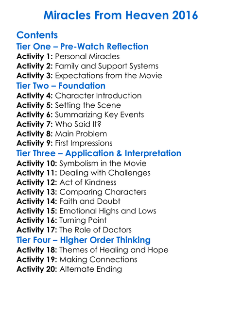 Miracles From Heaven 2016 Worksheet Activity Booklet