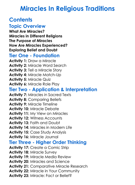 Miracles In Religious Traditions Worksheet Activity Booklet