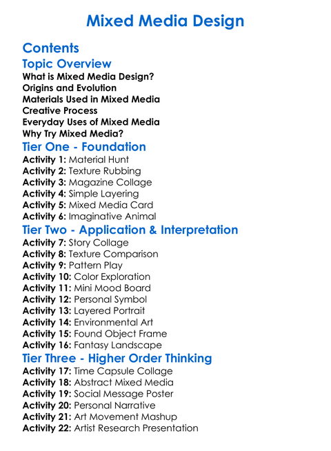 Mixed Media Design Worksheet Activity Booklet