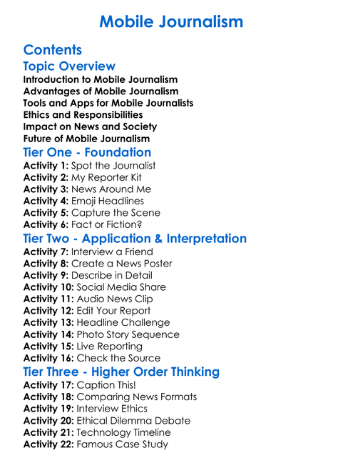 Mobile Journalism Worksheet Activity Booklet