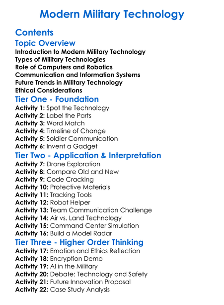 Modern Military Technology Worksheet Activity Booklet