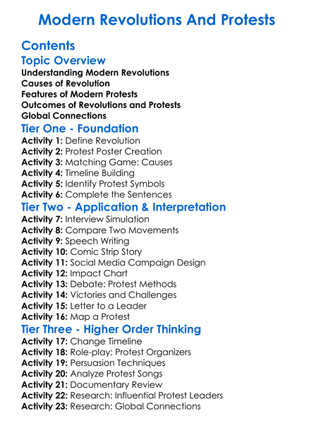 Modern Revolutions And Protests Worksheet Activity Booklet