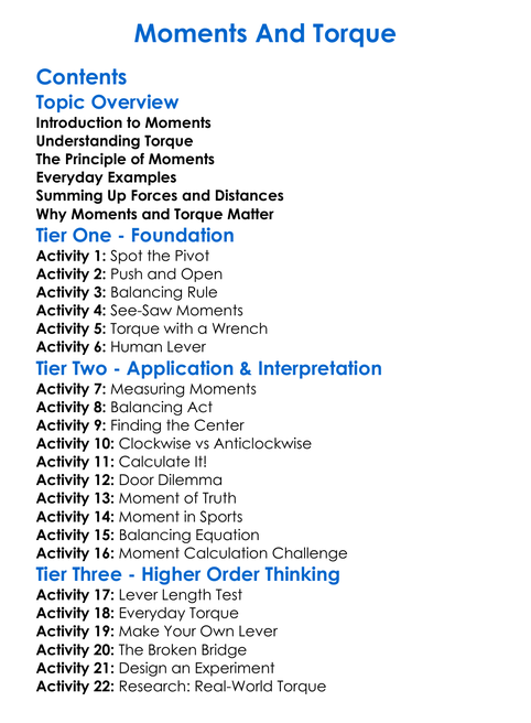Moments And Torque Worksheet Activity Booklet