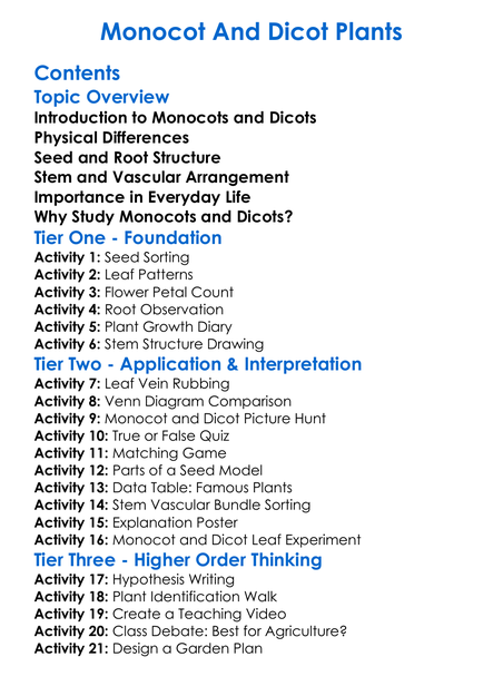 Monocot And Dicot Plants Worksheet Activity Booklet