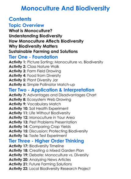 Monoculture And Biodiversity Worksheet Activity Booklet