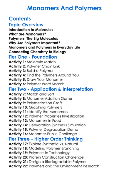 Monomers And Polymers Worksheet Activity Booklet