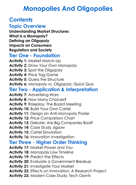 Monopolies And Oligopolies Worksheet Activity Booklet