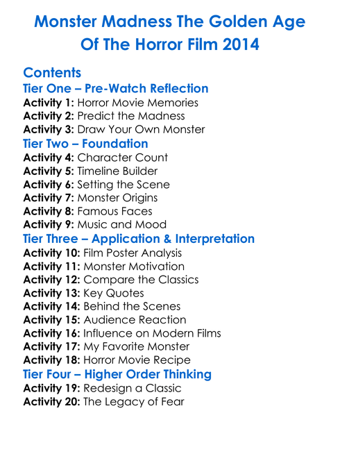 Monster Madness The Golden Age Of The Horror Film 2014 Worksheet Activity Booklet