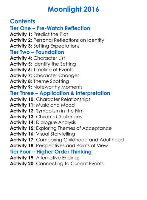 Moonlight 2016 Worksheet Activity Booklet