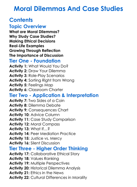 Moral Dilemmas And Case Studies Worksheet Activity Booklet