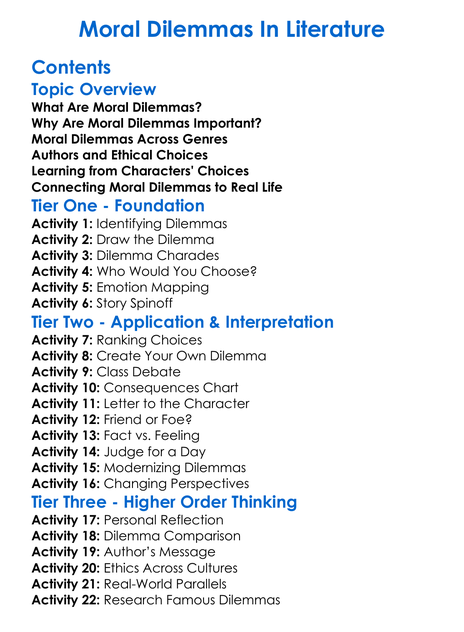Moral Dilemmas In Literature Worksheet Activity Booklet
