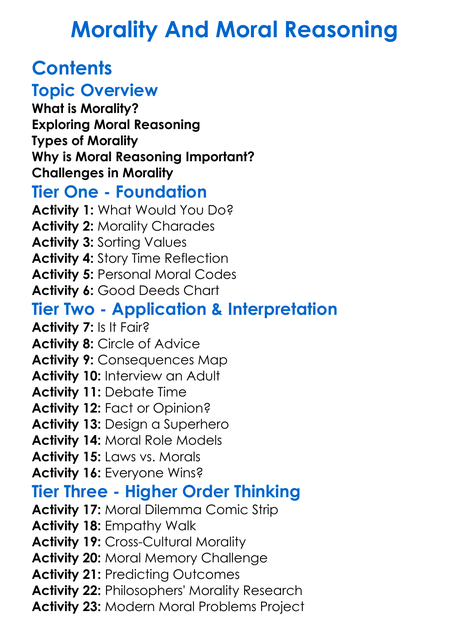 Morality And Moral Reasoning Worksheet Activity Booklet