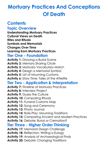Mortuary Practices And Conceptions Of Death Worksheet Activity Booklet