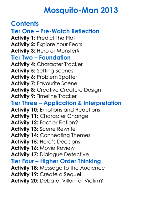 Mosquito-Man 2013 Worksheet Activity Booklet