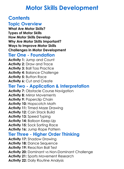 Motor Skills Development Worksheet Activity Booklet