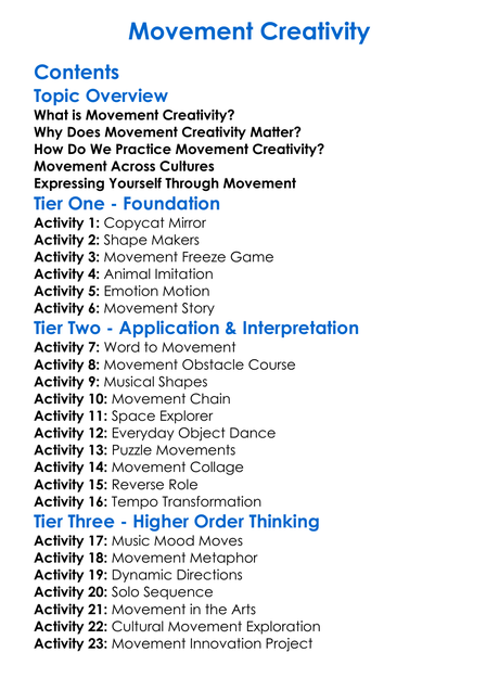 Movement Creativity Worksheet Activity Booklet