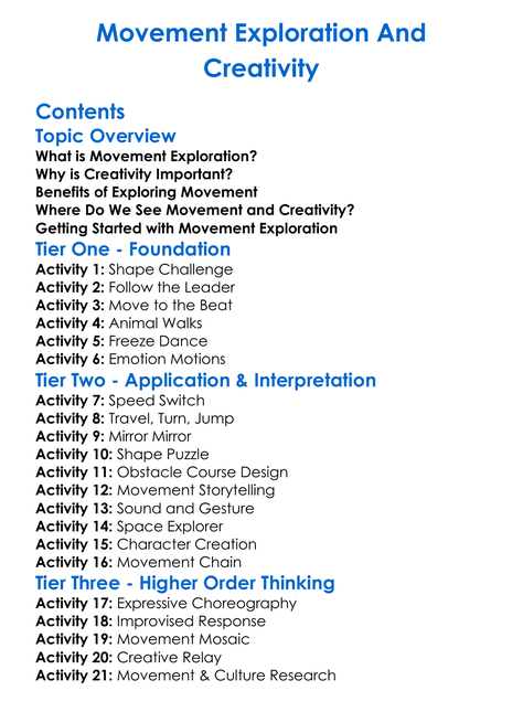 Movement Exploration And Creativity Worksheet Activity Booklet