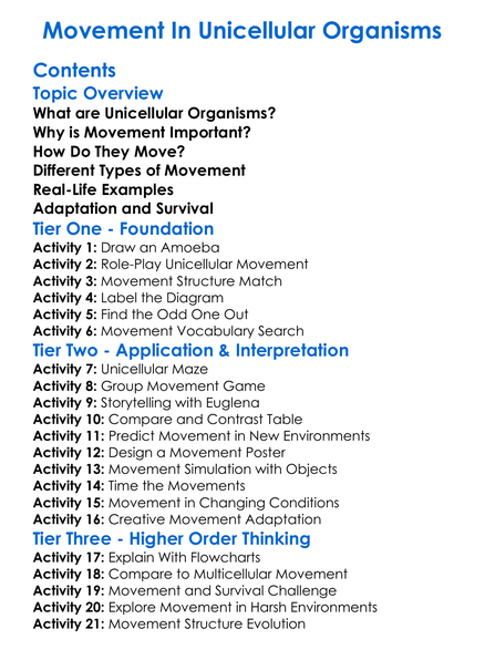 Movement In Unicellular Organisms Worksheet Activity Booklet