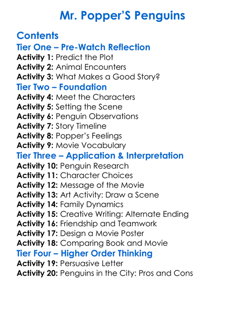 Mr Poppers Penguins Worksheet Activity Booklet