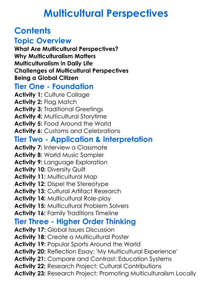 Multicultural Perspectives Worksheet Activity Booklet