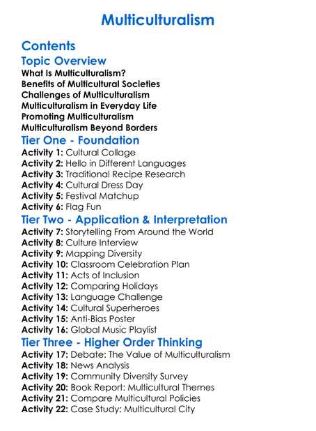 Multiculturalism Worksheet Activity Booklet
