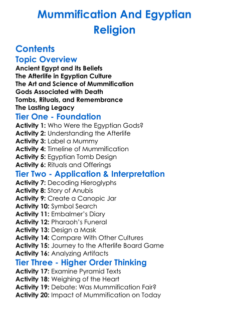 Mummification And Egyptian Religion Worksheet Activity Booklet