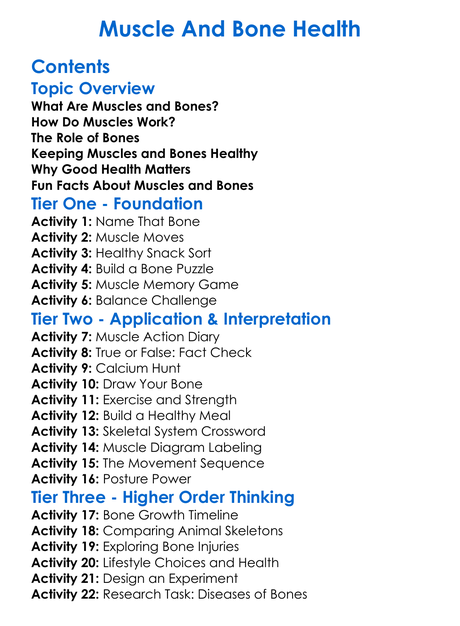Muscle And Bone Health Worksheet Activity Booklet