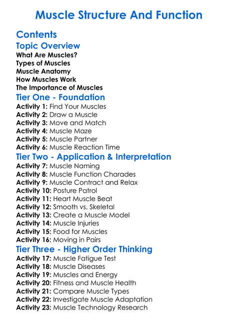 Muscle Structure And Function Worksheet Activity Booklet