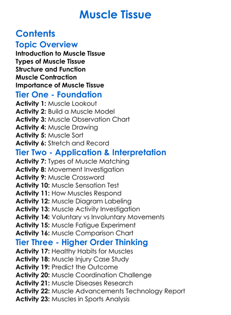 Muscle Tissue Worksheet Activity Booklet