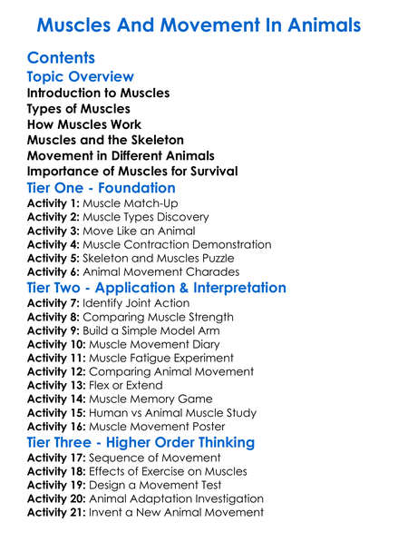 Muscles And Movement In Animals Worksheet Activity Booklet