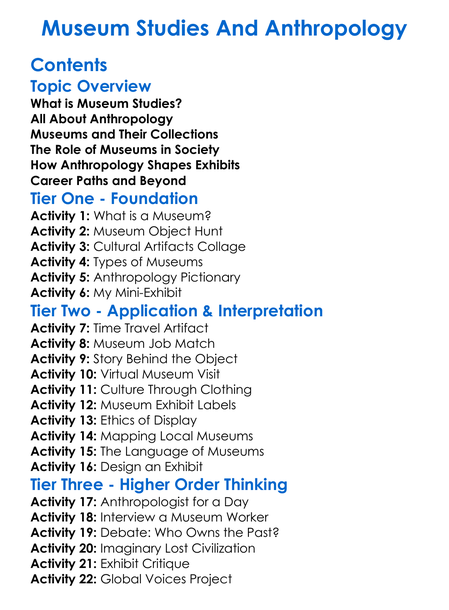 Museum Studies And Anthropology Worksheet Activity Booklet