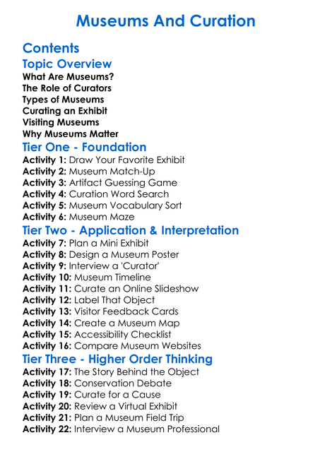 Museums And Curation Worksheet Activity Booklet